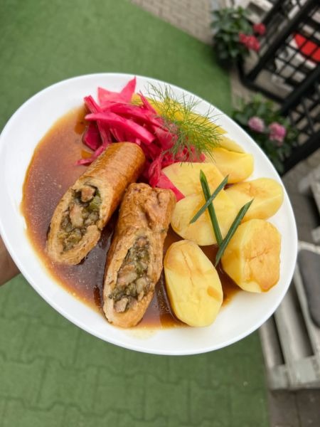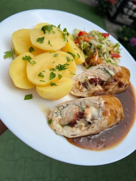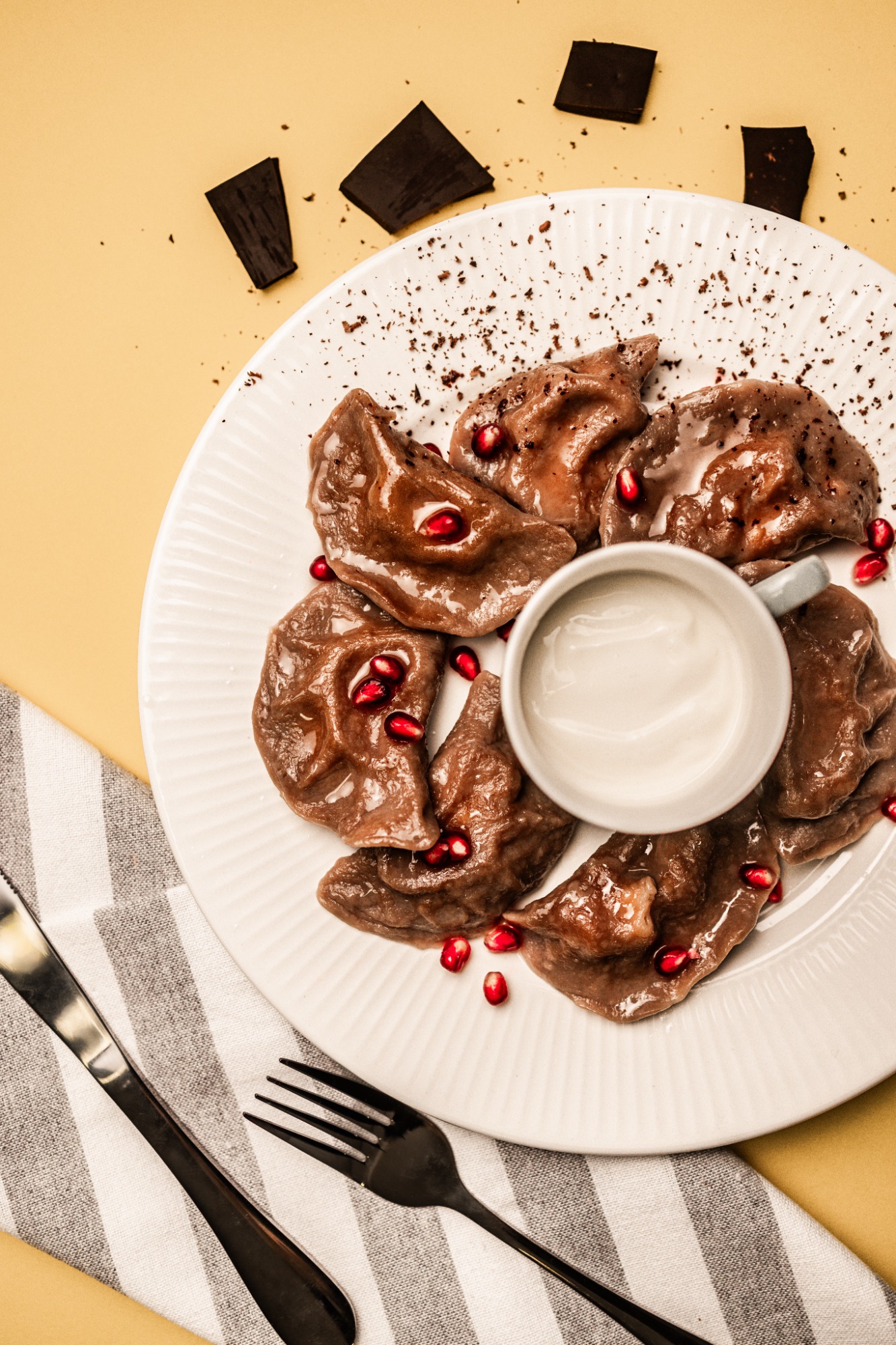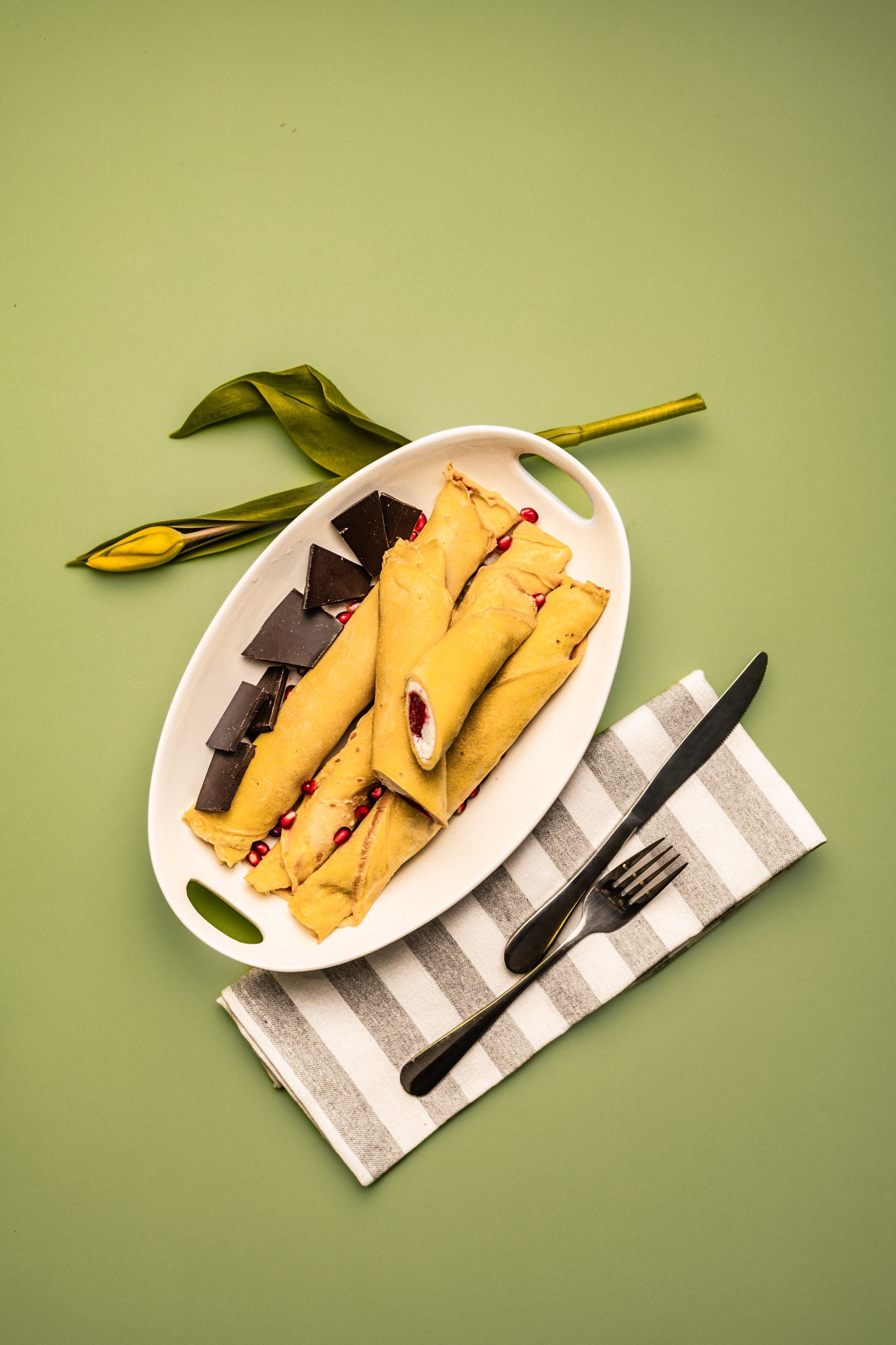 NALEŚNIKI CZEKOLADOWE Z PASTĄ CZEKOLADOWĄ, TWAROGIEM I BANANEM 3 SZTUKI
